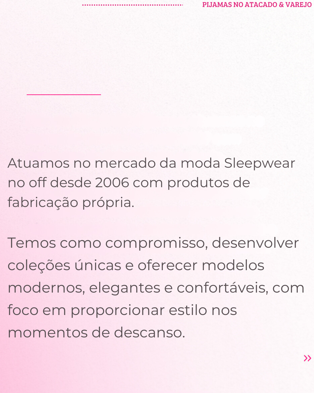 Nossa missão é oferecer uma experiência de compra fácil, rápida e segura, com um atendimento personalizado e produtos que atendem às necessidades das mulheres de hoje. Estamos sempre em busca das melhores tendências e inovações para que você encontre o pijama perfeito para todas as ocasiões. Seja para renovar seu guarda-roupa de descanso ou presentear alguém especial, aqui você encontra peças que fazem você se sentir ainda mais bonita e bem cuidada.